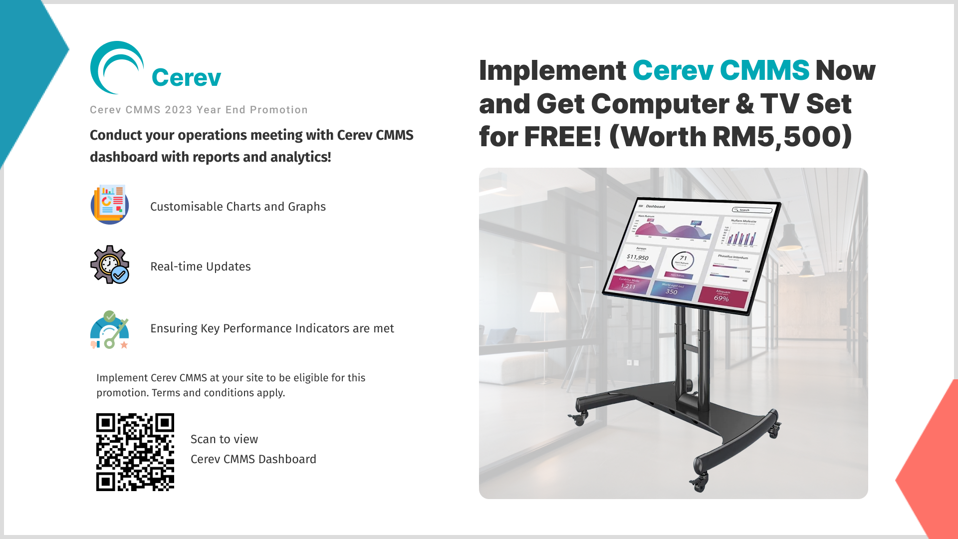 Revolutionize the way you manage your site with our cutting-edge CMMS software! For a limited time, when you implement our state-of-the-art solution, you'll receive a FREE TV and PC to visualize your site's performance like never before!